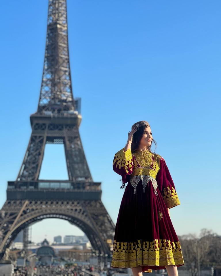 ชุดเดรสยาวแขนยาวผ้าชีฟองสไตล์อัฟกานิคูชี งานปักลายหรูหราสำหรับสาวอัฟกัน ดีไซน์วินเทจสำหรับงานเทศกาล สวยงามสง่างาม