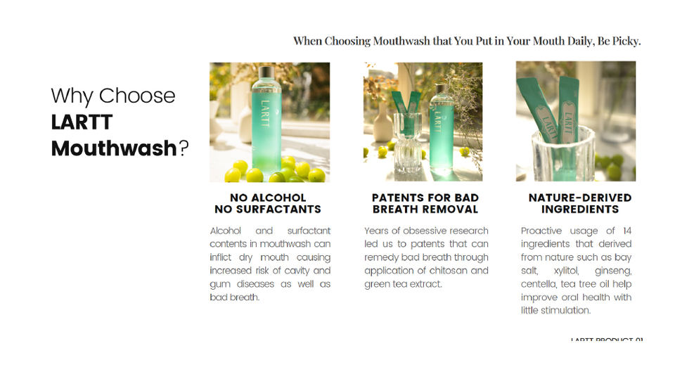น้ำยาบ้วนปาก LARTT พรีเมียม ปราศจากสารสกัดจากแอลกอฮอล์ ขนาดปกติ ผสมฟลูออไรด์และสารสกัดจากสมุนไพร สำหรับการดูแลช่องปากอย่างอ่อนโยนทุกวัน จากประเทศเกาหลี