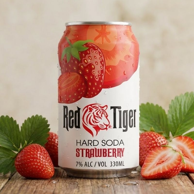 เครื่องดื่มแอลกอฮอล์พรีเมียมสำหรับบริการ OEM/ODM แบรนด์ส่วนตัว น้ำอัดลมรสสตรอว์เบอร์รีเรดไทเกอร์ บรรจุภัณฑ์ 330 มล./กระป๋อง