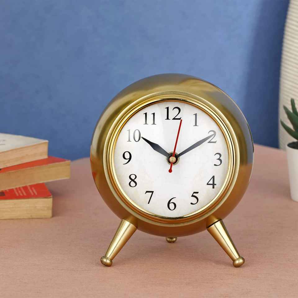 นาฬิกาตั้งโต๊ะอะลูมิเนียมพรีเมียม | นาฬิกาตั้งโต๊ะสีทองทันสมัย แบบเงียบ | ควอตซ์ตกแต่งบ้าน สำนักงาน ห้องนอน ของขวัญสุดเก๋ ทรงกลม