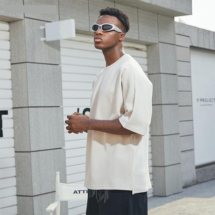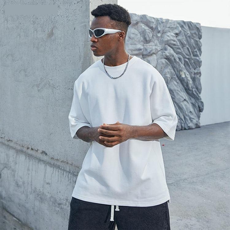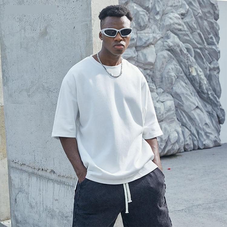 เสื้อยืดแขนสั้นผู้ชายผ้าฝ้ายถักโครเชต์คุณภาพสูงพิเศษ 100% พิมพ์โลโก้ตามสั่ง ป้องกันรอยยับ น้ำหนัก 300 กรัม สไตล์ไฮสตรีท
