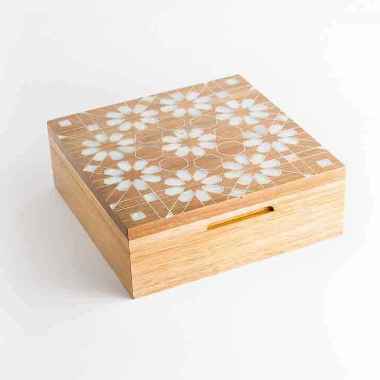 กล่องใส่ของอักษรอาหรับแบบพรีเมี่ยมพร้อมเคลือบแล็กเกอร์เคลือบเงากระดูกลายตัวอักษร Eid Mubarak ที่เป็นมิตรกับสิ่งแวดล้อม