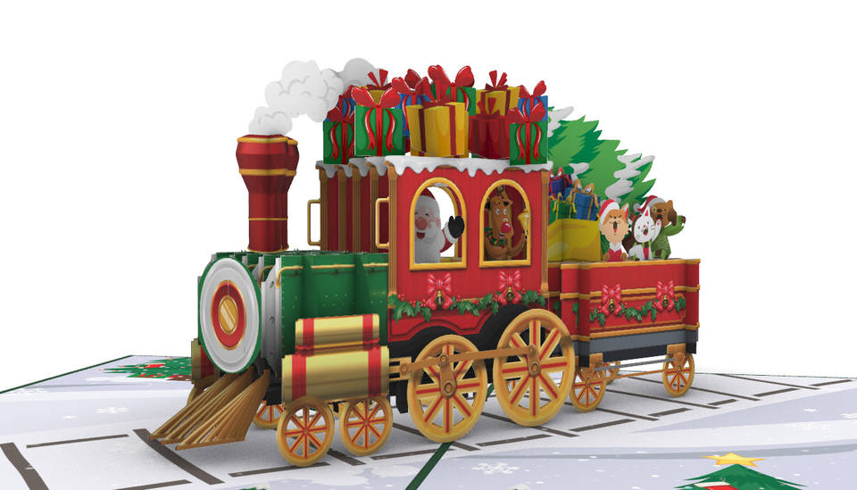 กระดาษ3D พรีเมี่ยมศิลปะการ์ดอวยพรป๊อปเคลือบเงาลายรถไฟคริสต์มาส127x178มม./พิมพ์ดิจิตอลจากโรงงานสูง