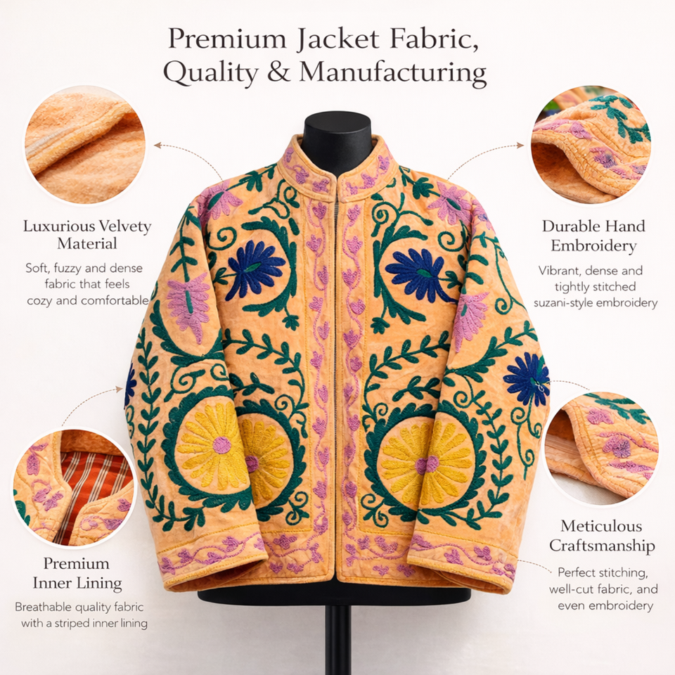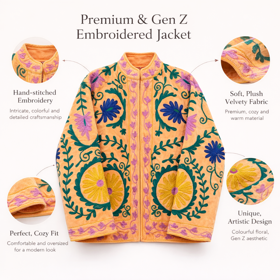 Premium Artisanal Velvet Bomber Women Floral Embroidery Stand Collar Casual Jacket Factory Direct