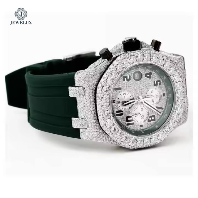 นาฬิกาเพชรมอยส์ซอไนต์แบบอัตโนมัติคุณภาพสูงสายรัดทำจากยางตัวเรือนเหล็กคุณภาพสูงและสายสเตนเลสที่ทนทาน