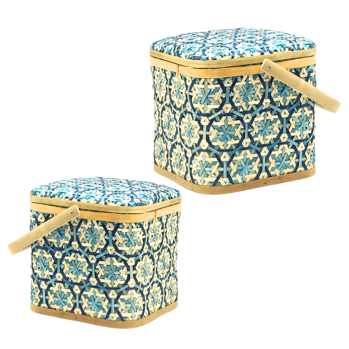 ตะกร้าไม้ไผ่เก็บพร้อมตะกร้าเก็บผลไม้ลายดอกไม้สีสันสดใสเหมาะสำหรับเป็นของขวัญและใช้ตกแต่ง