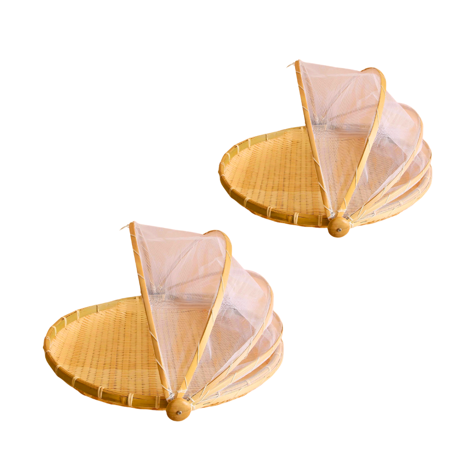 ถาดไม้ไผ่พรีเมียมพร้อมฝาครอบอาหารกันแมลงแบบตาข่าย มีหลายขนาดให้เลือก งานฝีมือเวียดนาม