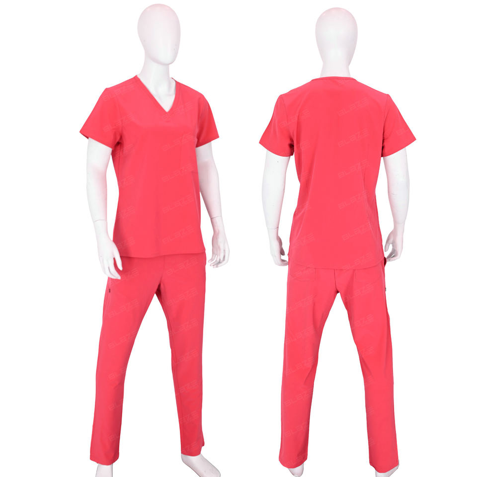 ชุดเครื่องแบบสครับขัดผิวแบบพรีเมี่ยมชุดเครื่องแบบพยาบาลแขนสั้นคอตั้งดีไซน์โพลีเอสเตอร์/ ผ้าฝ้าย