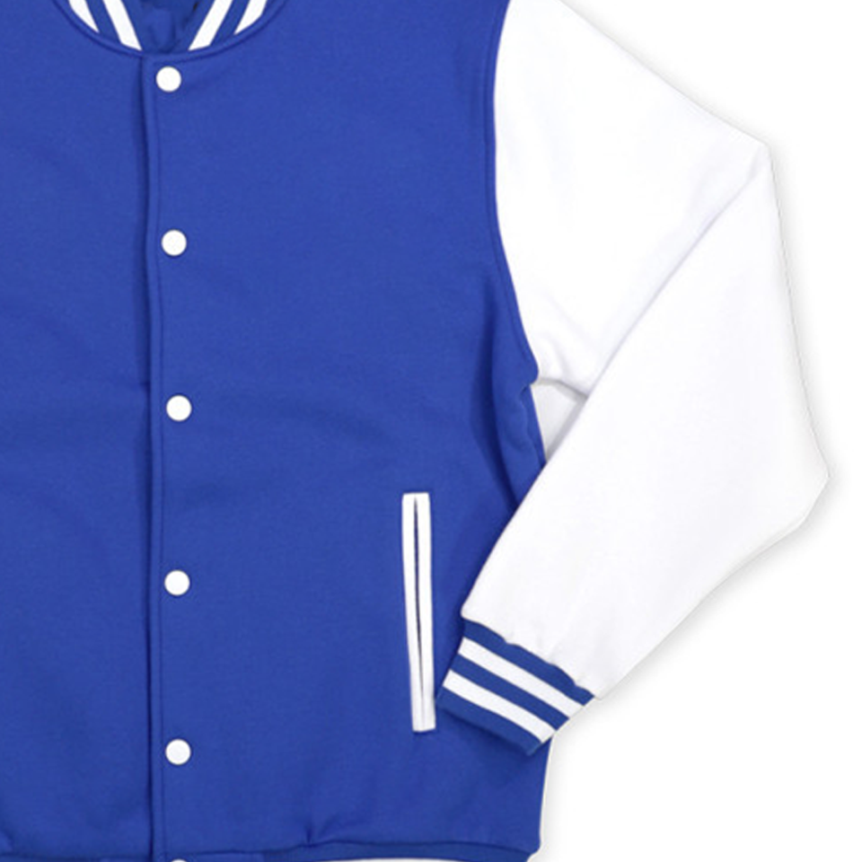 เสื้อแจ็คเก็ตวาร์ซิตี้กันลมแบบมีฮีตเตอร์บุขนแกะสีน้ำเงินขาวพรีเมียม BPS สำหรับฤดูหนาว แบบกำหนดเองได้ พร้อมตัวอักษรเชนิลล์ แขนหนังทรงบอมเบอร์ ซิกมา
