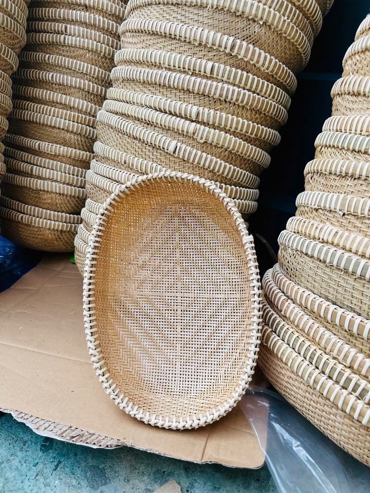 ถาดกล่องไม้ไผ่พรีเมี่ยมพร้อมที่จับ-ตะกร้าเก็บของอเนกประสงค์จากธรรมชาติยั่งยืนสำหรับการจัดระเบียบและการตกแต่ง