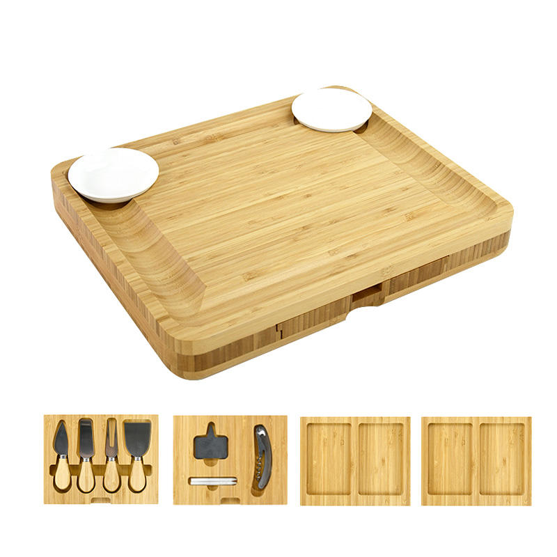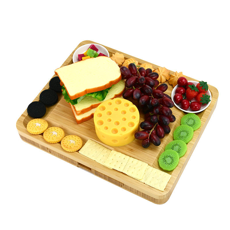 ชุดเขียงไม้ไผ่ชีสพรีเมี่ยม-ชุดเขียงไม้ชาร์คิวรีและถาดเสิร์ฟชีสพร้อมลิ้นชักสำหรับเป็นของขวัญ