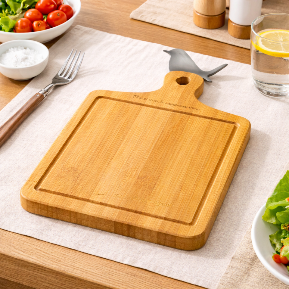 เขียงไม้ไผ่พรีเมียมพร้อมหูจับ เขียงครัวสำหรับหั่นผัก เนื้อ ขนมปัง เป็นมิตรกับสิ่งแวดล้อม ทนทาน ใช้เตรียมอาหารได้