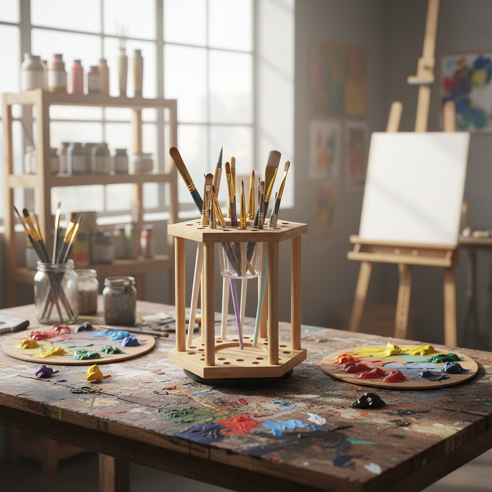 Bamboo Display Drying Stand Paint Brush Organizer