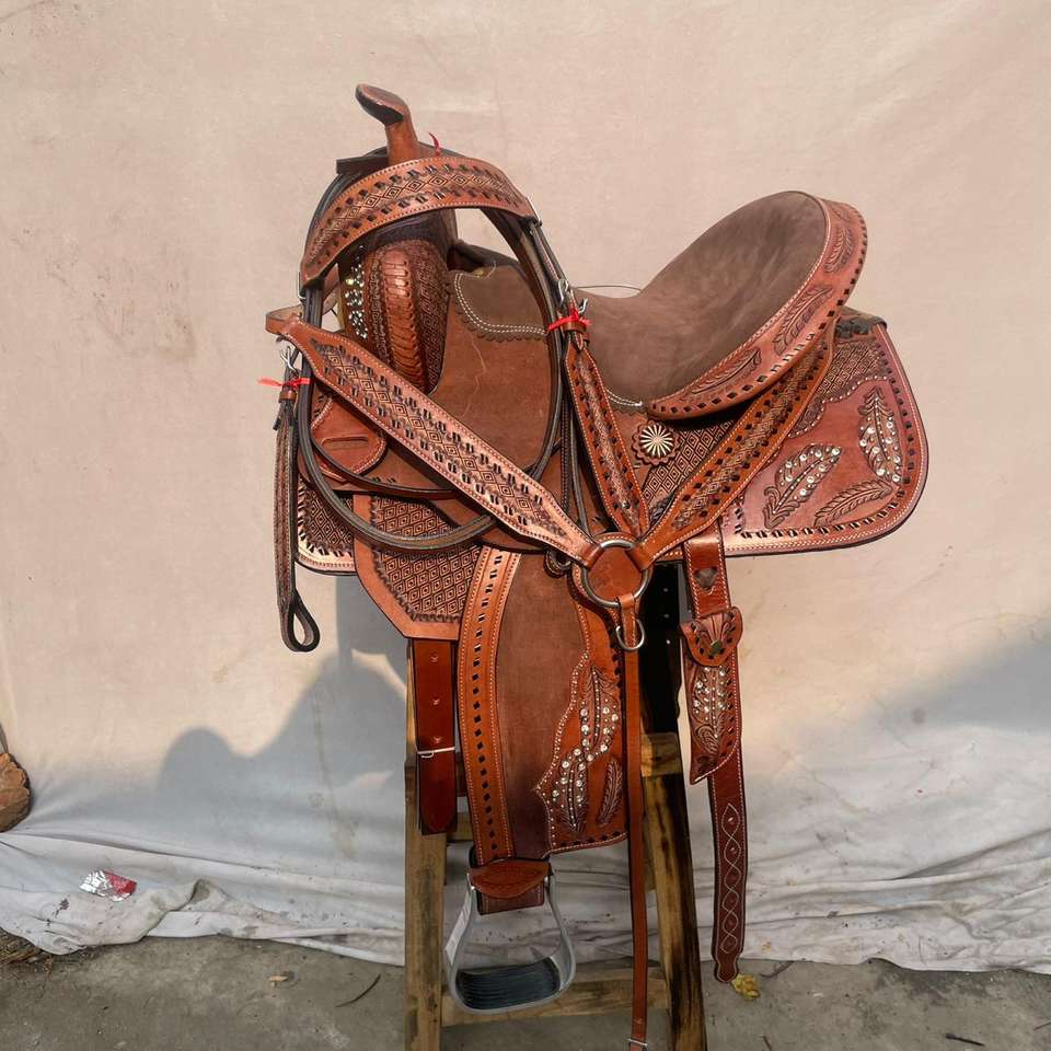 ชุดอานม้าหนังแท้สไตล์ตะวันตกพร้อมงานศิลปะลายไม้ต้นไม้พรีเมียม | ชุดอุปกรณ์ขี่ม้าแบบแฮนด์เมดพร้อมอุปกรณ์เสริมฟรี
