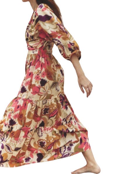 เดรสลายดอกไม้ขนาดใหญ่แบบพรีเมี่ยมสวมใส่ในชีวิตประจำวันที่หรูหรามีสไตล์เหนือกาลเวลาและสวมใส่สบายในราคาไม่แพง