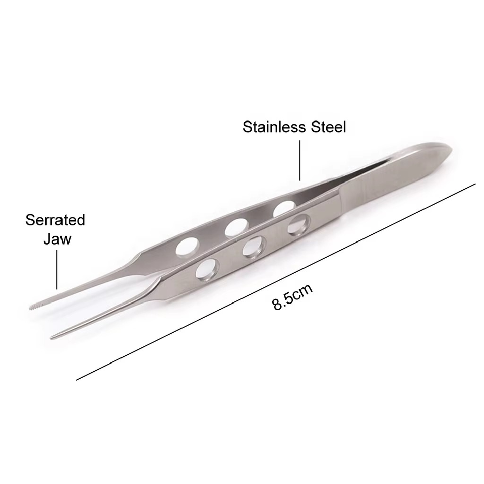 คีมผ่าตัดตาพรีเมียม บิชอป ฮาร์แมน ไอริส ทำจากสแตนเลส สำหรับผ่าตัดจักษุ 1x2 ฟัน คีมจับเนื้อเยื่อ สำหรับการผ่าตัดขนาดเล็ก 8.5 ซม.
