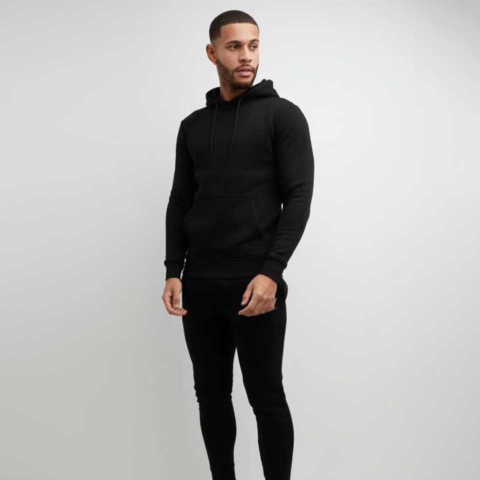ชุดเสื้อมีฮู้ดและกางเกงจ็อกเกอร์สีดำแนวนักกีฬาระดับพรีเมียมมีสไตล์และความสบายที่หลากหลายพบกับสไตล์โมเดิร์นที่สมบูรณ์แบบสำหรับทุกโอกาส