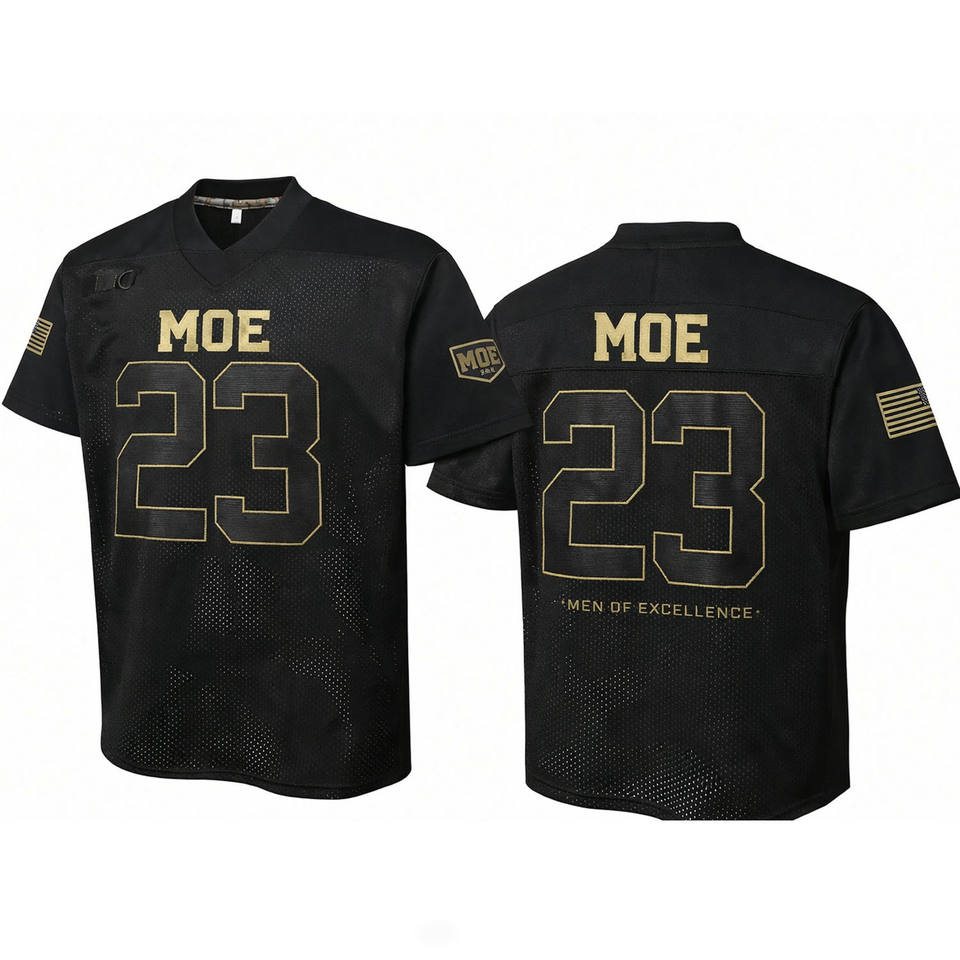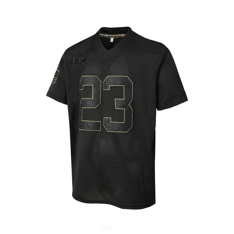 ชุดทีมพรีเมียมสีดำทองลายตาข่าย พร้อมหมายเลขพิมพ์ลายเมทัลลิก ระบายอากาศได้ดี ทรงแอธเลติก เสื้ออเมริกันฟุตบอล ผู้ผลิต OEM