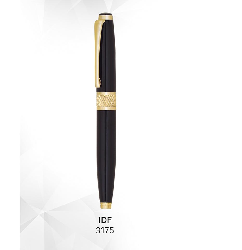 Premium Black Roller Pen with Satin Silver Cap & Golden Crafted Clip Christmas Business Gift Set at Discounted Price