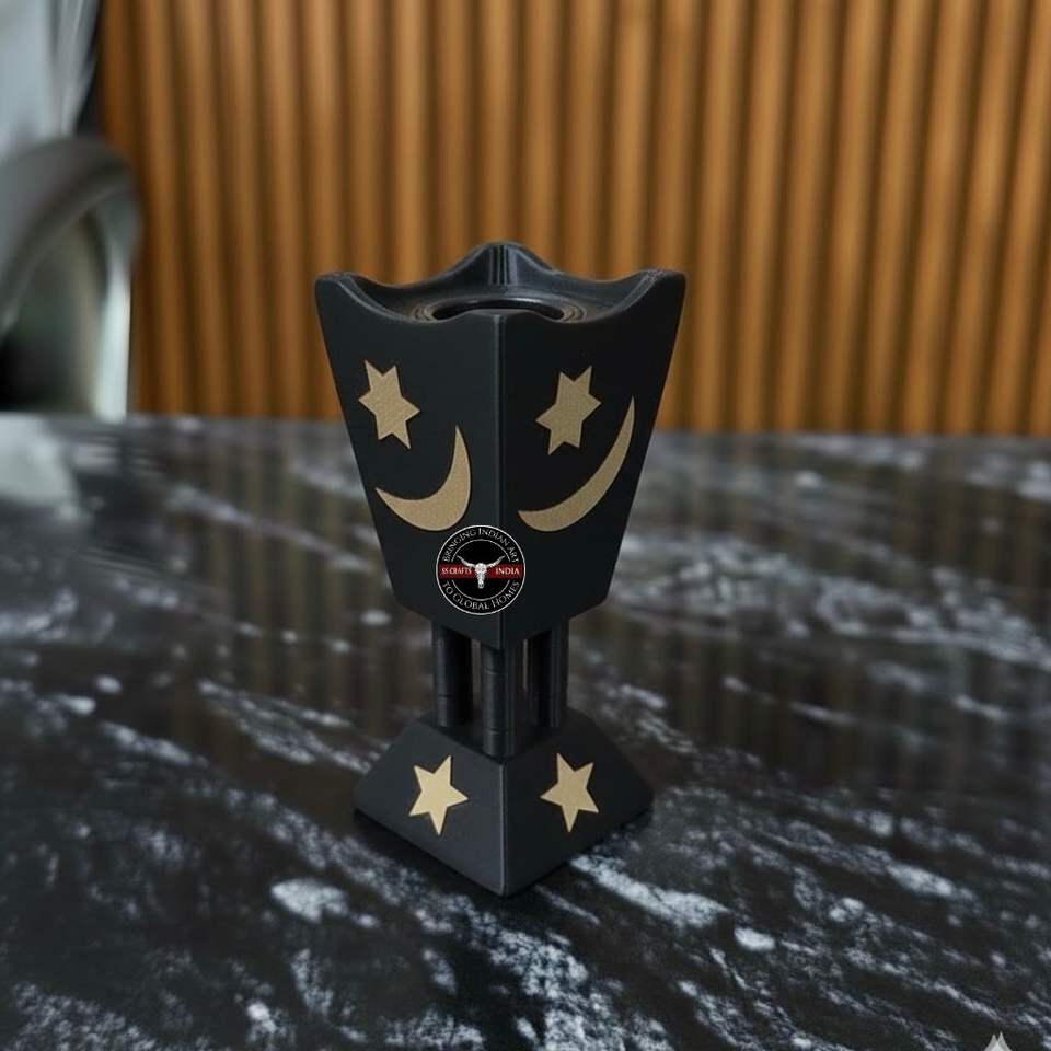 เตาเผาเครื่องหอมไม้ดำพรีเมียม งานแฮนด์เมด ลายดาวและพระจันทร์ สำหรับตกแต่งบ้าน ห้องสมาธิ และโต๊ะทำงาน