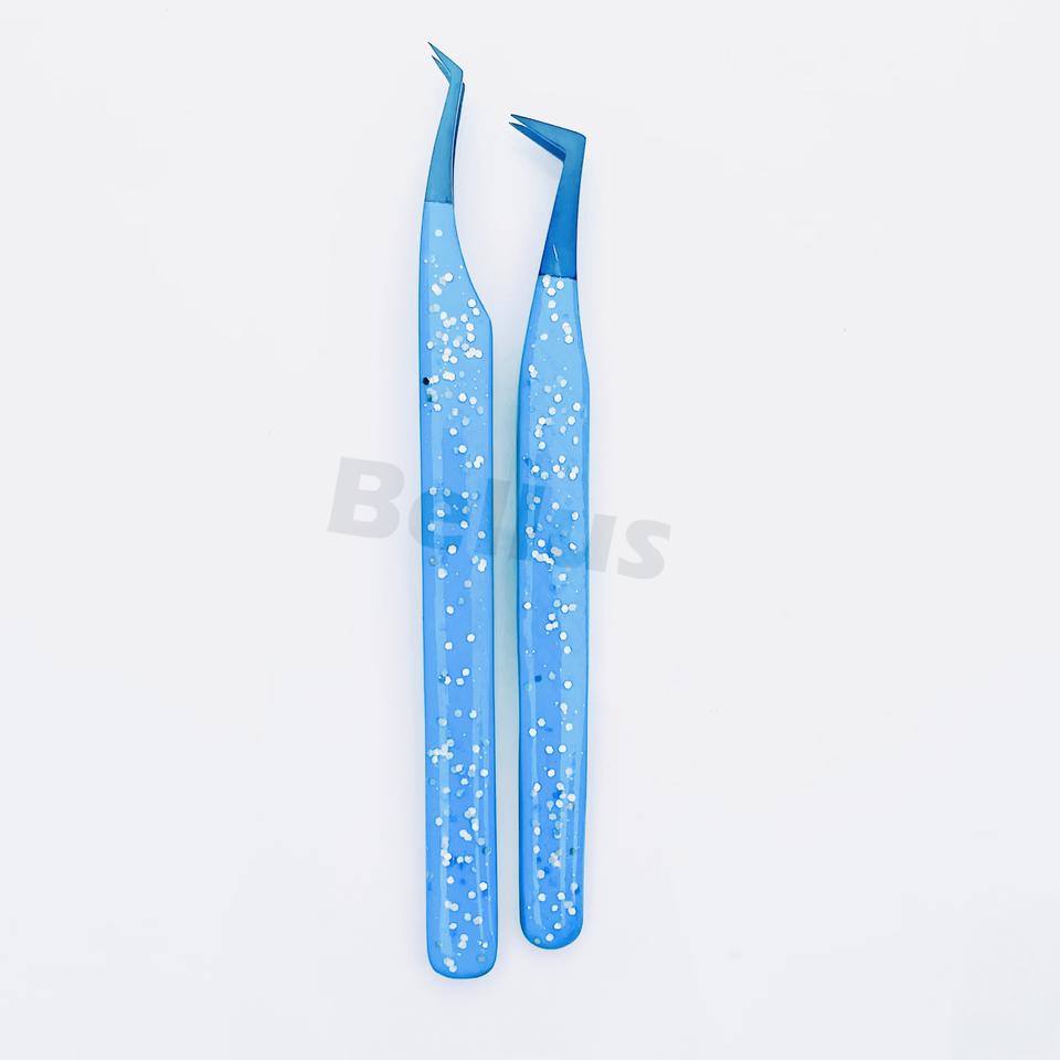 ชุดแหนบขนตาปลอมสีฟ้าแวววาวสำหรับแยกขนตาอุปกรณ์ขนตาสแตนเลสแบบปรับแต่งได้ตามต้องการ