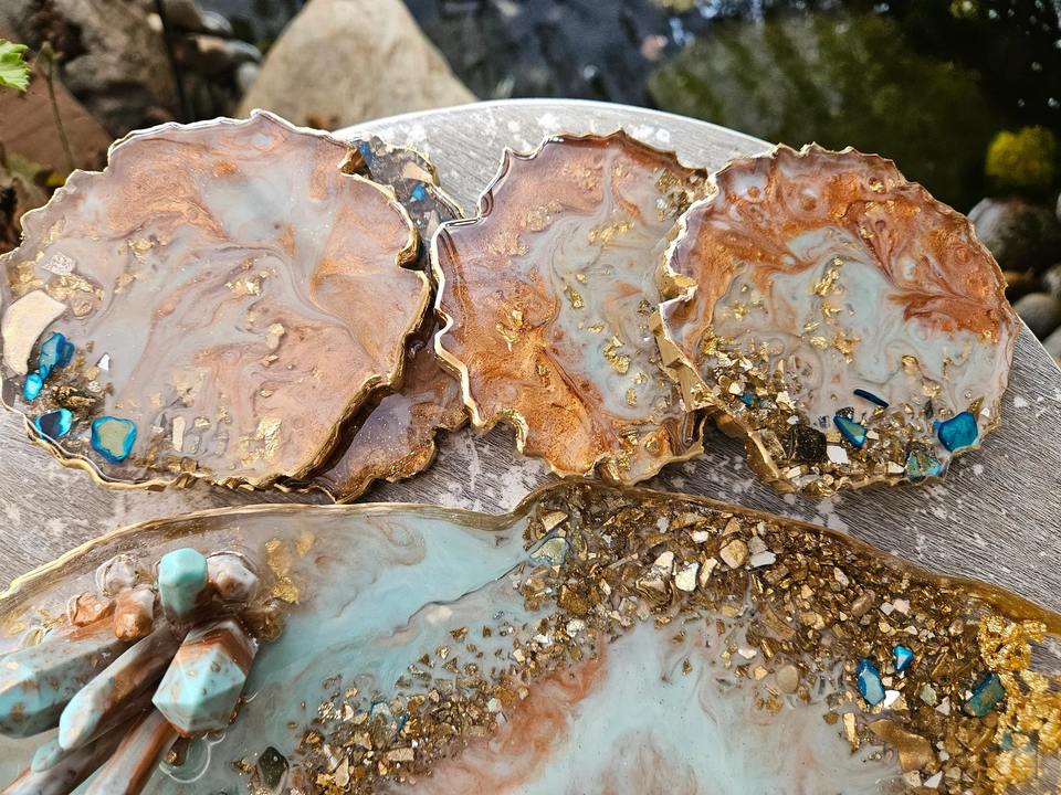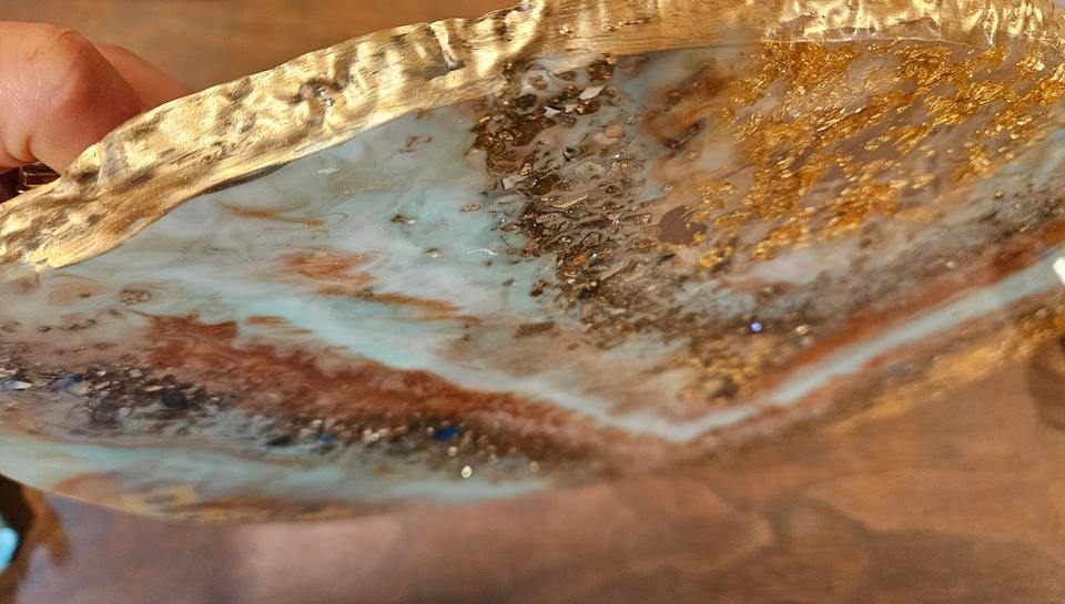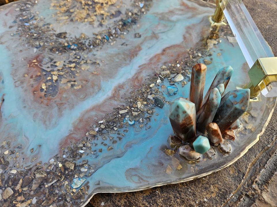 ถาดเรซินแวววาวสีฟ้าพรีเมี่ยมถาดทำด้วยมือเงางามทันสมัยสำหรับตกแต่งบ้านโต๊ะกาแฟและจัดระเบียบจากอินเดีย