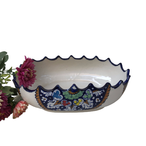 ชามเซรามิกสำหรับเสิร์ฟพิมพ์ลายด้วยมือเครื่องปั้นดินเผาสีน้ำเงินระดับพรีเมียม