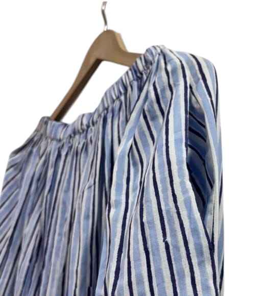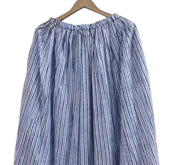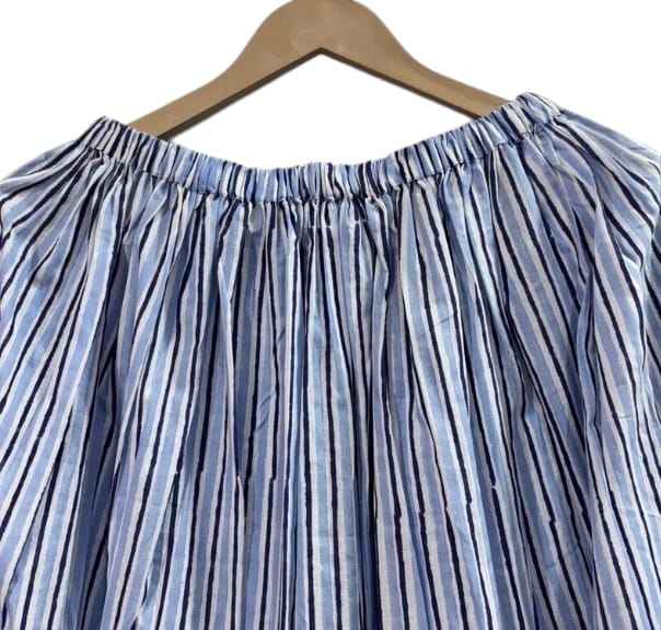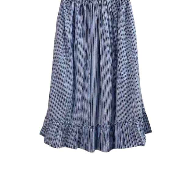 Premium Blue & White Striped Flared Maxi Skirt with Soft Lightweight Fabric, Elegant Pleated Look and Comfortable Elastic
