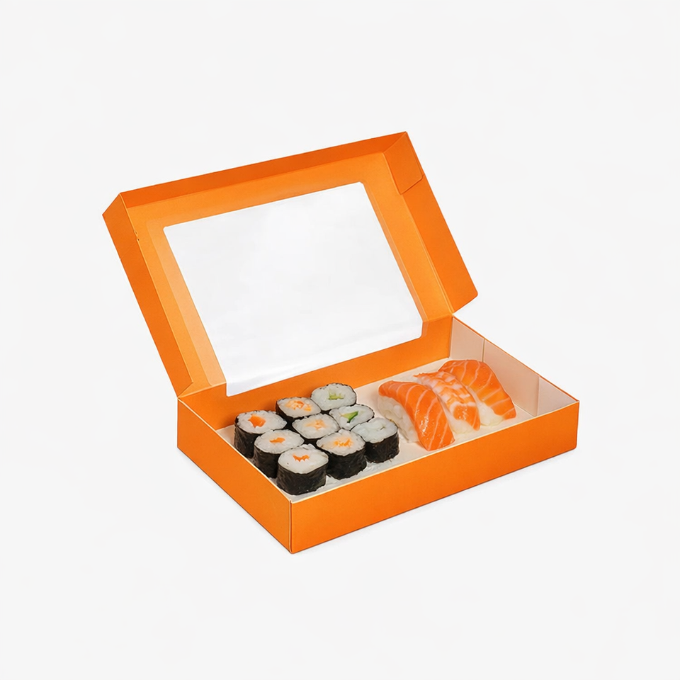 กล่องซูชิทรงหนังสือพรีเมียม สำหรับซูชิแบบนำกลับบ้าน ใช้ในงานจัดเลี้ยงและร้านอาหาร เป็นมิตรกับสิ่งแวดล้อม
