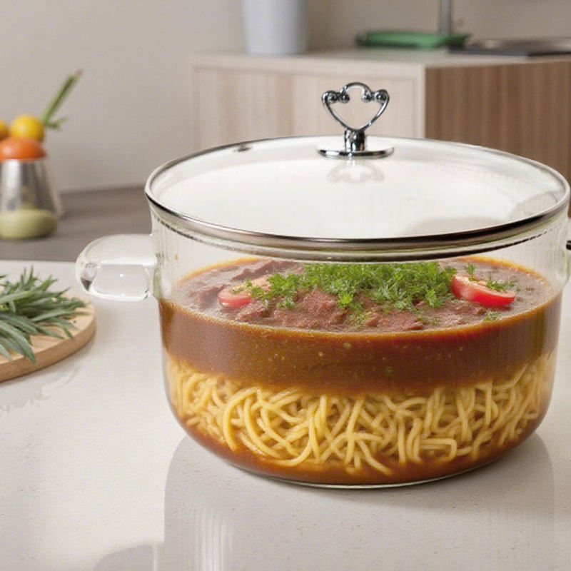 กระทะแก้วบอโรซิลิเกตดีไซน์คลาสสิกสำหรับเตาแก๊สและเตาไฟฟ้าเครื่องครัวพร้อมที่จับสำหรับทำอาหาร