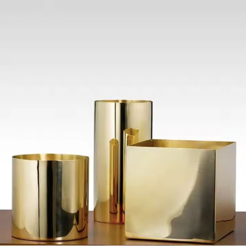 ภาชนะบรรจุเทียนทองเหลืองแบบพรีเมี่ยมโถเทียนกลมขี้ผึ้งถั่วเหลืองที่มีคุณภาพดีที่สุดขวดโหลใส่เทียนเปล่าขัดเงาไม่เหมือนใคร