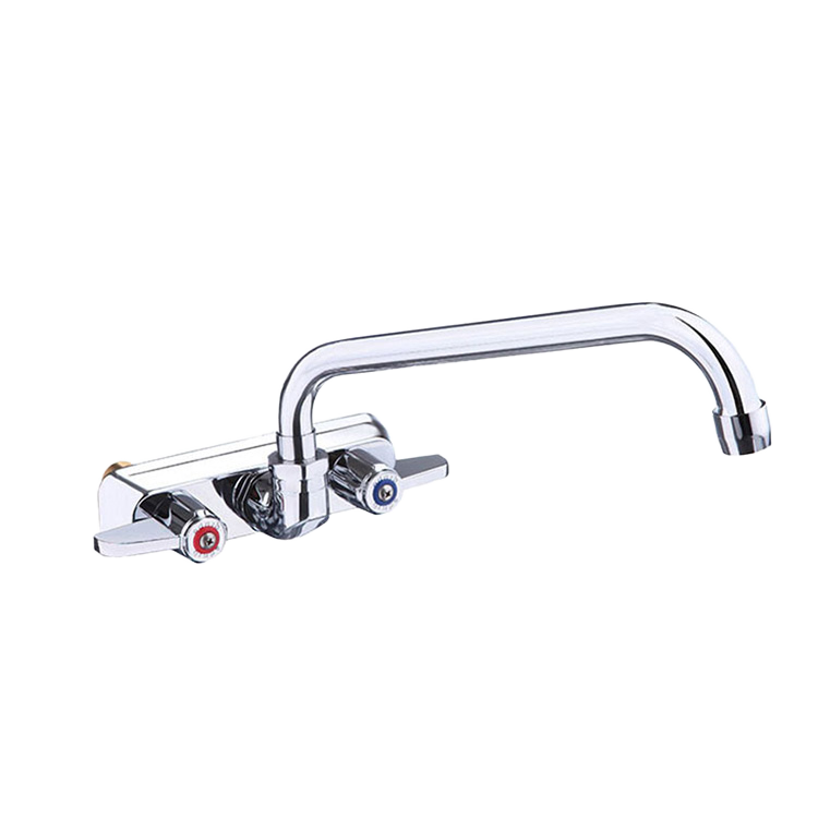 ก๊อกน้ำห้องครัวทองเหลืองชุบโครเมียมแบบพรีเมียม คันโยกคู่ หัวก๊อกหมุนได้ ไหลแรง ติดตั้งง่าย