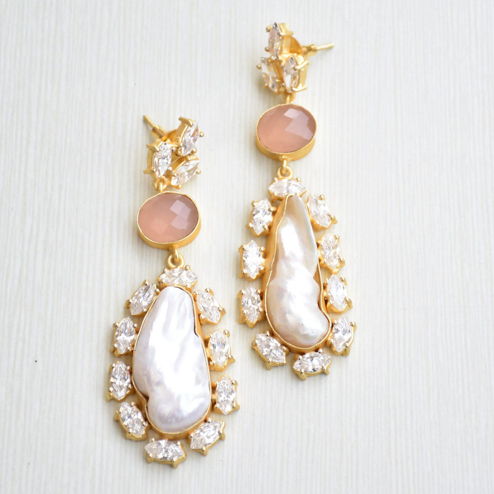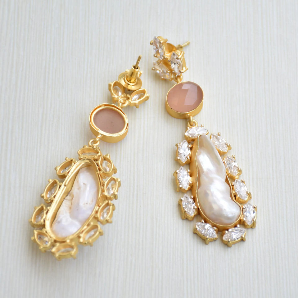 Premium Brass Cluster Earrings Gold Plated Zircon Genuine Healing Crystal 18K Gold Plated Finish Unique Designer Pattern High