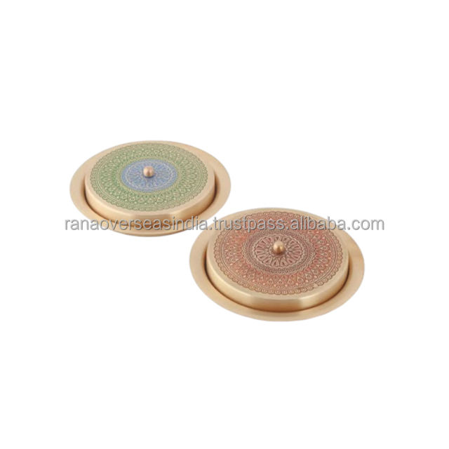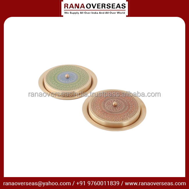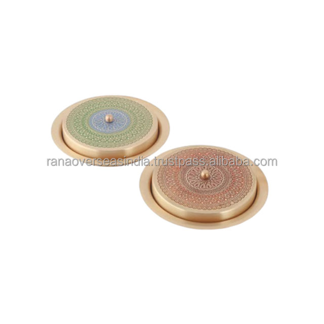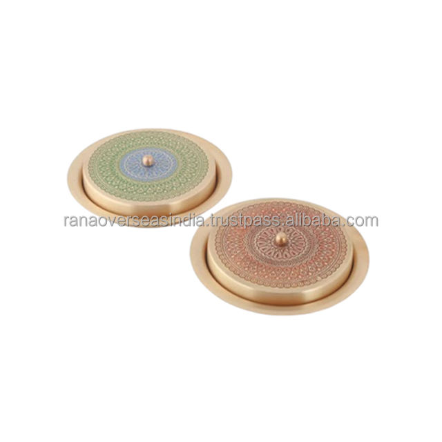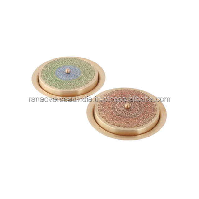 ถาดเสิร์ฟลึกทำจากทองเหลืองพร้อมฝาปิดเคลือบลายดอกไม้พร้อมฝาปิดดีไซน์ทันสมัยและใช้งานได้ดีสำหรับเสิร์ฟขนมผลไม้แห้งและขนม