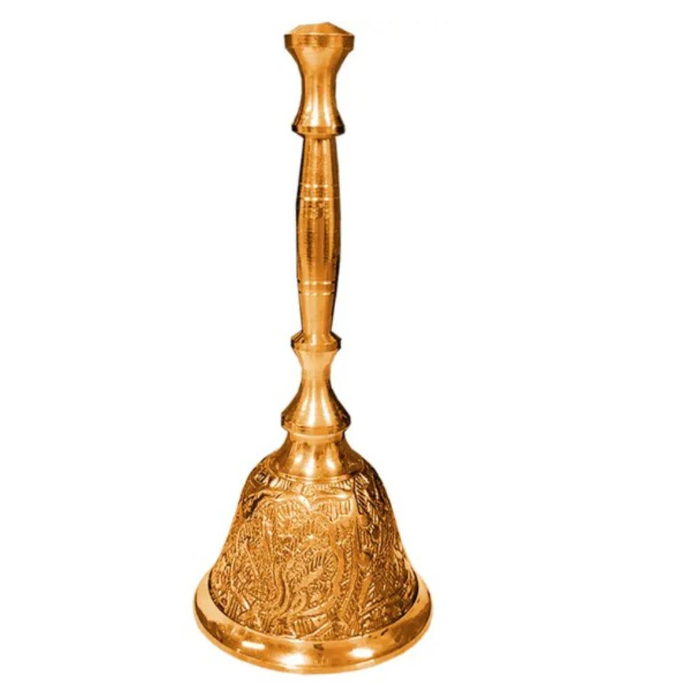 กระดิ่งทองเหลืองพรีเมี่ยมสำหรับ pooja และ Aarti วัดแบบดั้งเดิม ghanti ด้วยเสียงขัดเงาทองตกแต่งของขวัญสำหรับบ้าน
