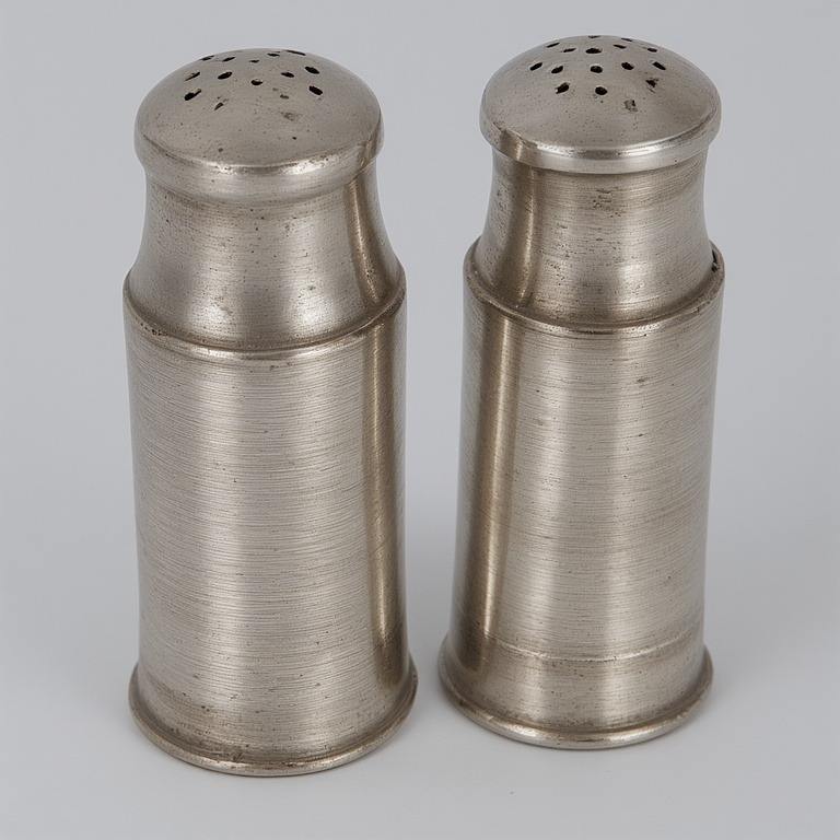 เครื่องบดเกลือและพริกไทยทองเหลืองระดับพรีเมี่ยมพร้อมงานช่างฝีมือตกแต่งขอบเงินโบราณที่ออกแบบมาสำหรับการตกแต่งภายในห้องรับประทานอาหาร