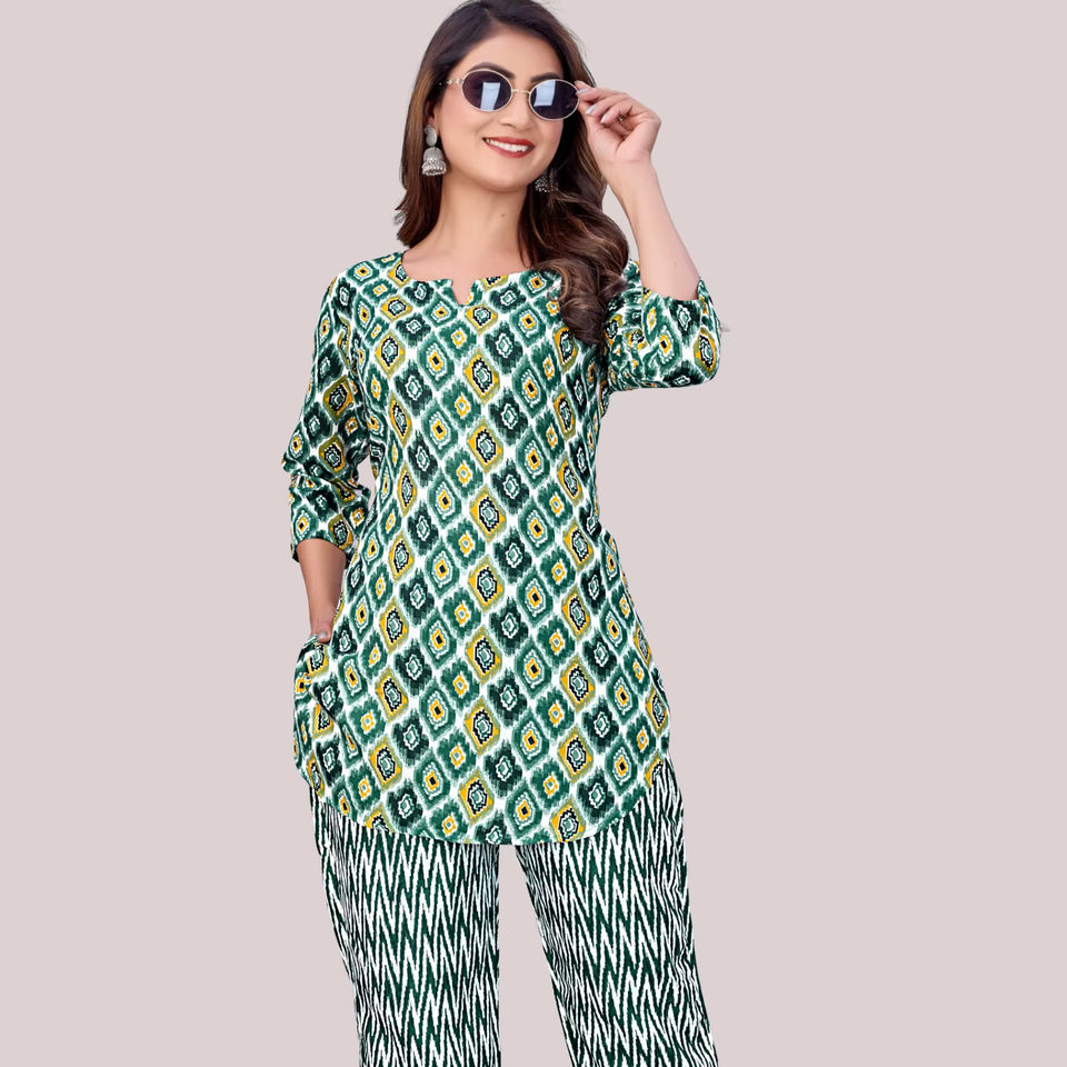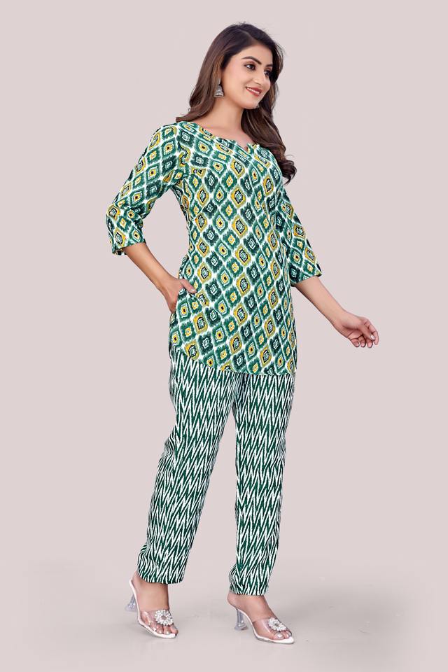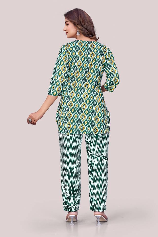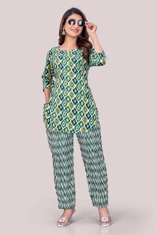 ชุดเซ็ตเสื้อผ้าผู้หญิงลายดอกไม้สีเขียวระบายอากาศได้ดี พรีเมียม 2 ชิ้น ชุดลำลอง คอทรงกลม เนื้อผ้านุ่ม ชุดวอร์มเข้าชุดกัน