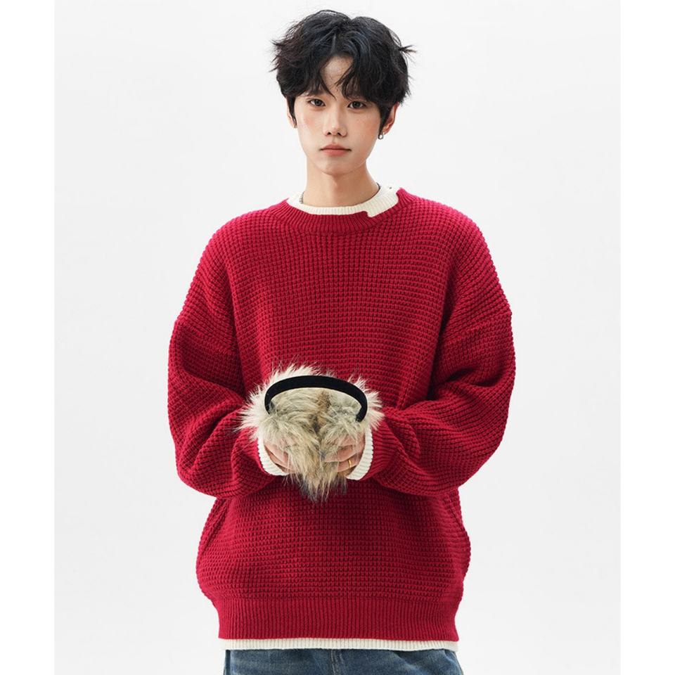 เสื้อสเวตเตอร์ถักแบบหนา ระบายอากาศได้ดี สไตล์มินิมอล คอเสื้อแบบสตรีท ทรงโอเวอร์ไซส์ แบบสองชิ้นหลอกๆ สำหรับฤดูใบไม้ร่วงและฤดูหนาว สำหรับทั้งชายและหญิง