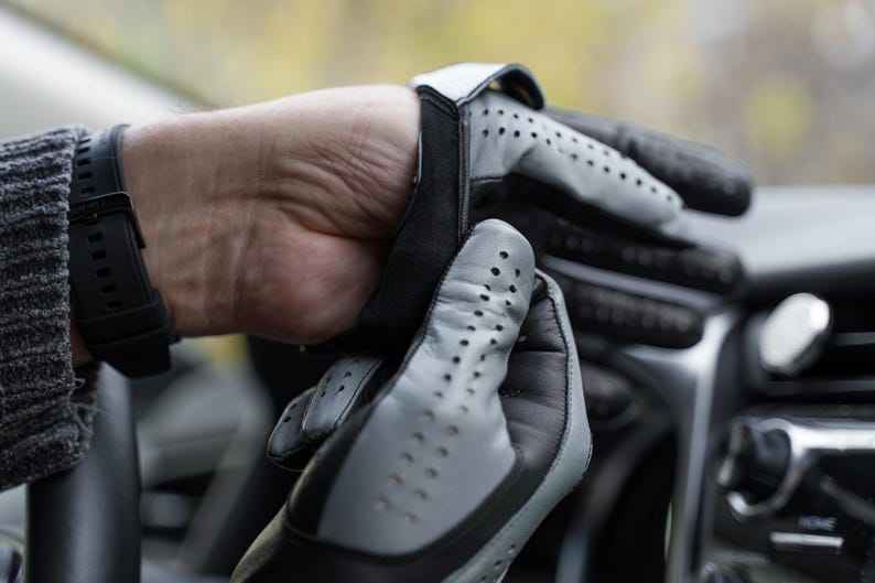 ถุงมือขับรถหนังระบายอากาศระดับพรีเมียมสำหรับผู้ชายและผู้หญิง ถุงมือขับรถแบบไม่มีนิ้วแบบมีรูระบายอากาศ ถุงมือหนังแท้นุ่ม