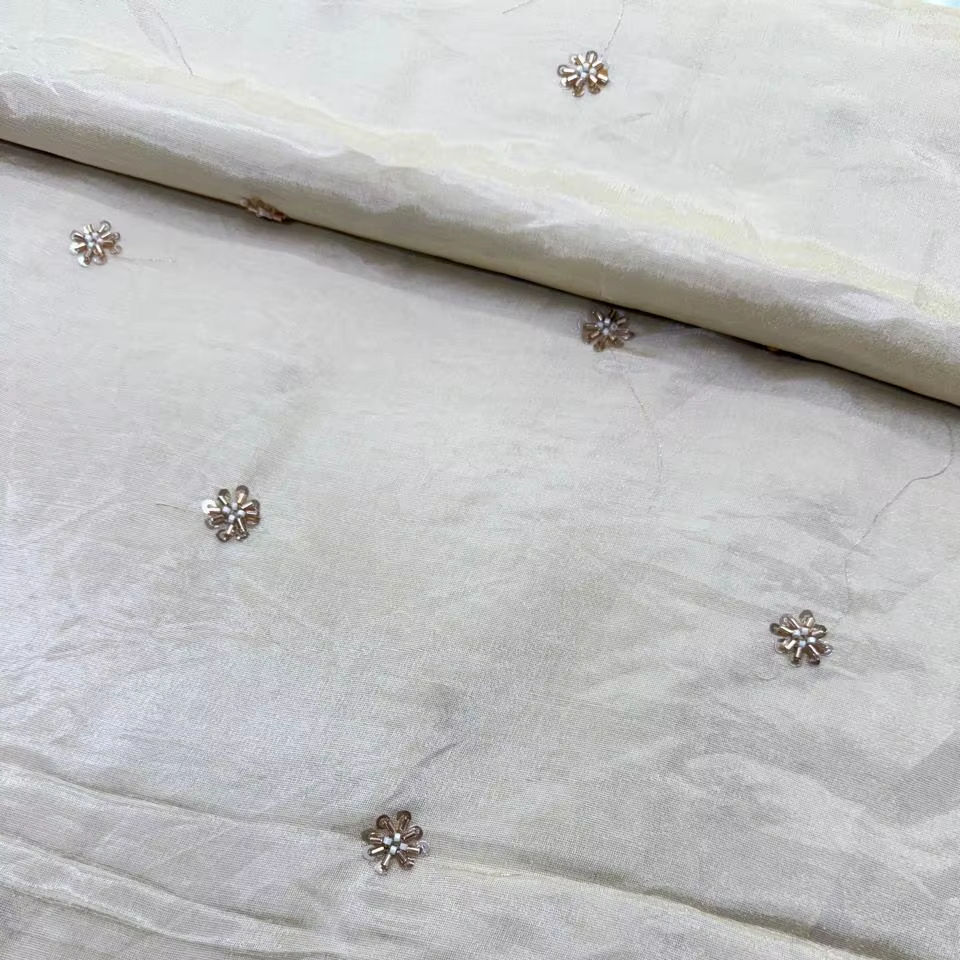 ผ้าพิมพ์ลายวิสโคสคอสมอสซิมเมอร์ทิชชูเนื้อผ้าทอระบายอากาศได้ดี แห้งเร็ว เป็นมิตรกับสิ่งแวดล้อม พร้อมลายปักลูกปัดดั้งเดิม เหมาะสำหรับทำกระเป๋าเด็กผู้หญิง