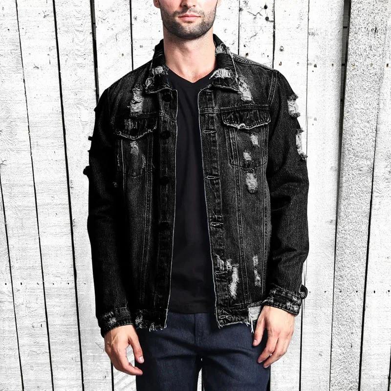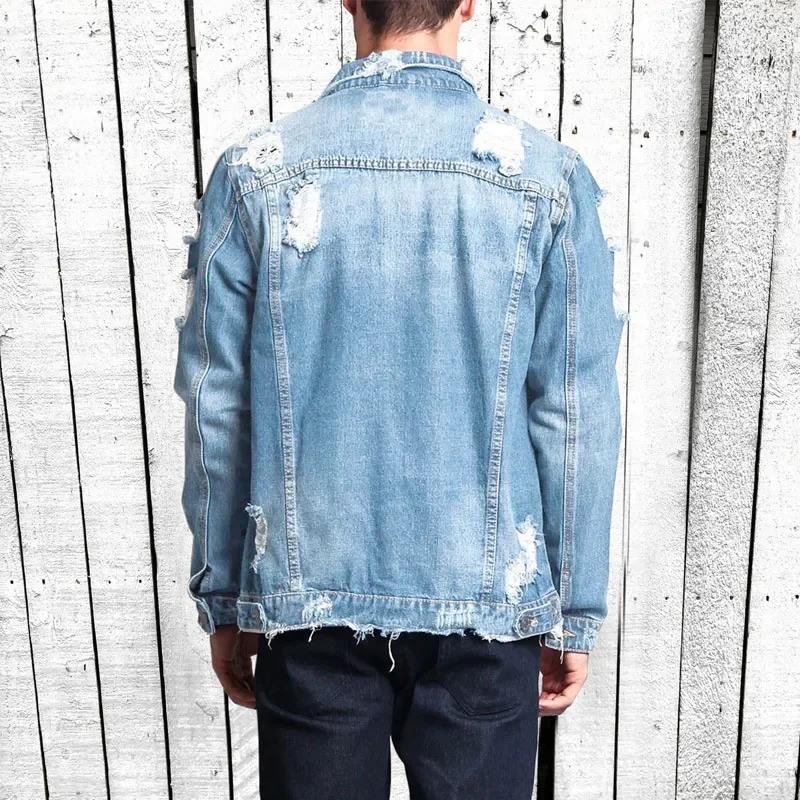 แจ็กเก็ตผ้ายีนส์ของผู้ชายระบายอากาศได้ดีมีสไตล์เสื้อแจ็คเก็ตผ้าฝ้าย100% สำหรับผู้ชายแจ็คเก็ตยีนส์ฟอกมีสไตล์