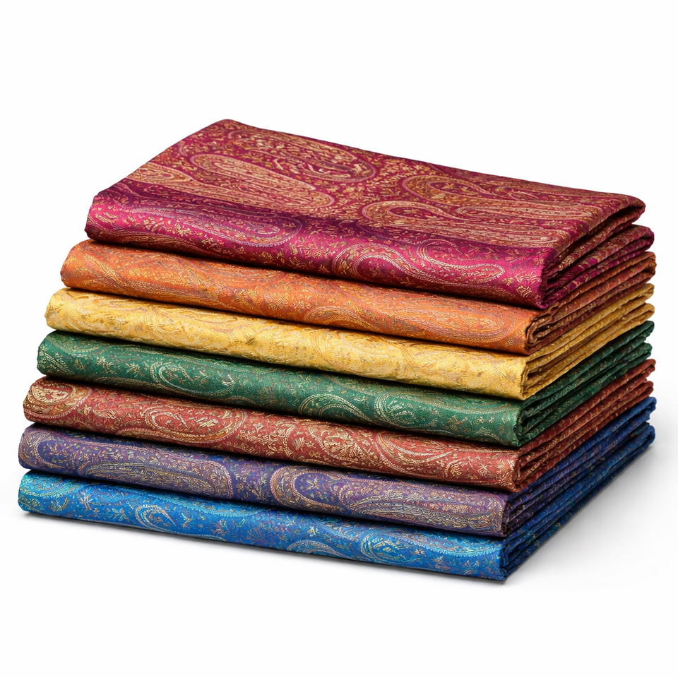 ผ้าไหมโบรเคดหวีพิเศษ พรีเมียม เป็นมิตรกับสิ่งแวดล้อม ลายดอกไม้เพสลีย์ ทอแบบแจ็คการ์ด สำหรับชุดส่าหรีเด็กผู้หญิง ชุดเดรส และงานหุ้มเบาะ