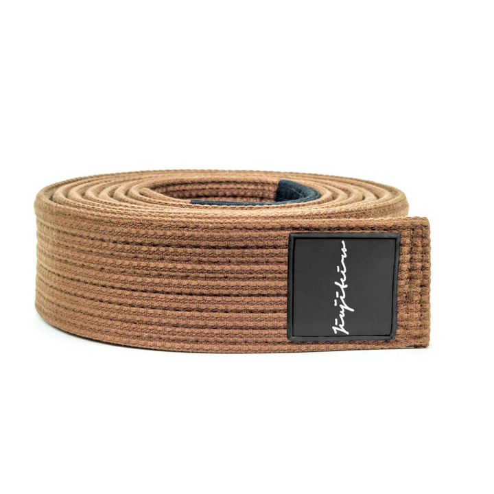 เข็มขัดบราซิลเลียนยิวยิตสู (BJJ) ระดับพรีเมียม สีน้ำตาล ผลิตจากผ้าฝ้ายสองชั้น แข็งแรง ทนทาน เหมาะสำหรับการฝึกซ้อมศิลปะการต่อสู้ ช่วยเสริมสร้างการพัฒนาทักษะยิวยิตสู