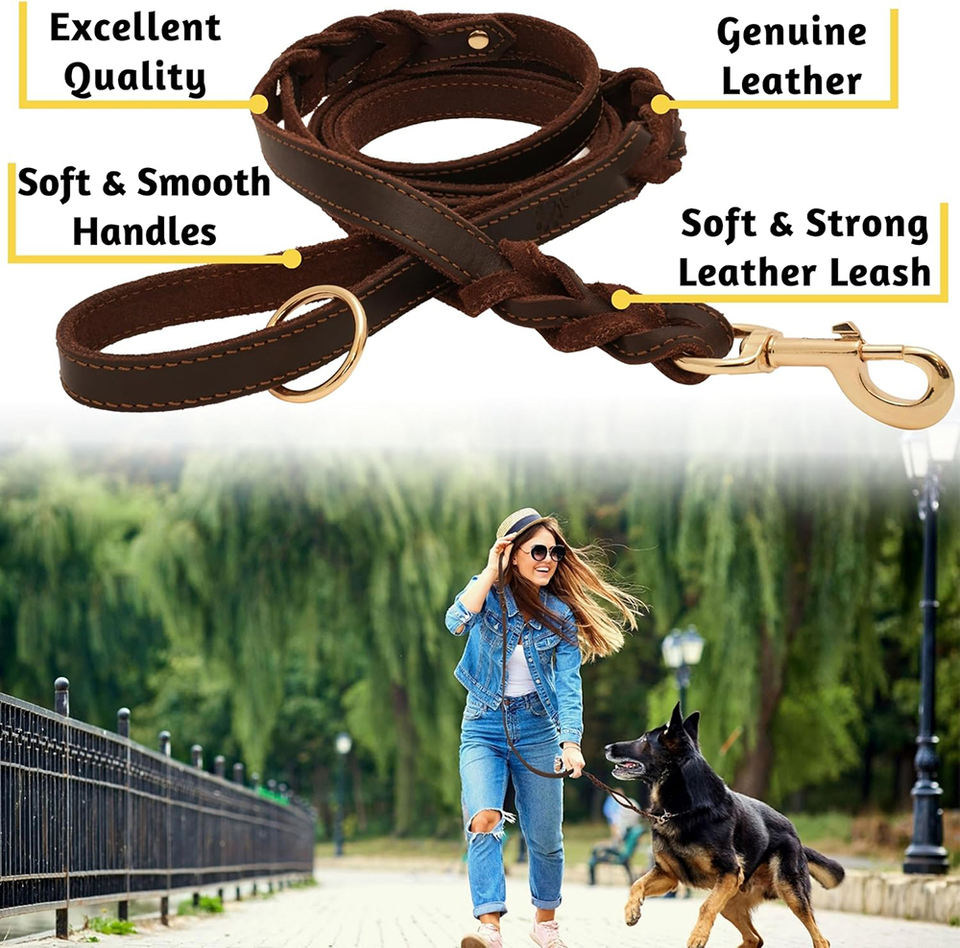 ปลอกคอสุนัขหนังสีน้ำตาลพรีเมี่ยมทนทานปรับได้นุ่มหัวเข็มขัดโลหะขนาดสำหรับสุนัขพันธุ์เล็กถึงใหญ่