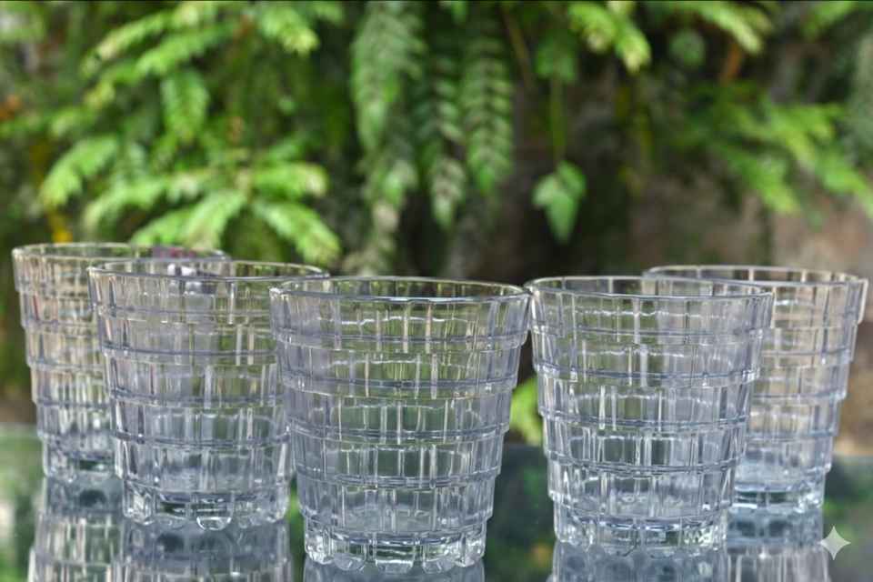 แก้วน้ำทรงกริดใสสไตล์โมเดิร์นคุณภาพพรีเมียม บรรจุภัณฑ์แบบแพ็คใหญ่ เหมาะสำหรับการจัดหาสินค้าจำนวนมาก ผู้ค้าส่ง และผู้จัดงานอีเว้นท์