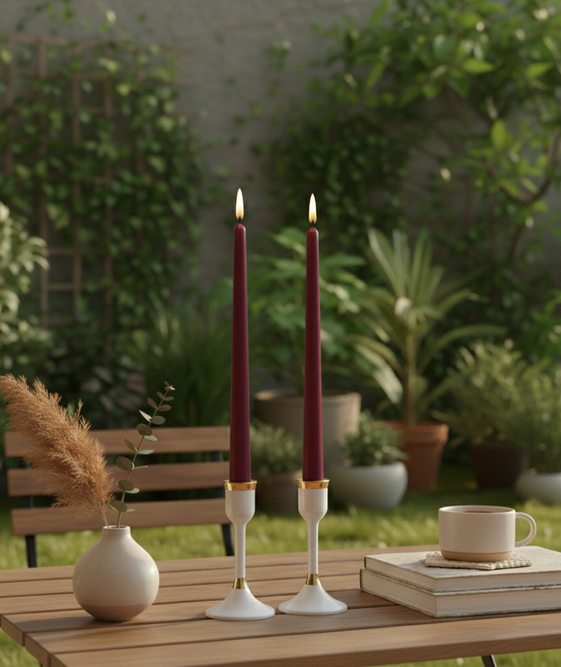 ชุดเทียนทรงกรวยเบอร์กันดีพรีเมียม 2 ชิ้น ทำด้วยมือ ไร้ควัน ไม่มีกลิ่นหอม สำหรับคริสต์มาส งานแต่งงาน บาร์ ห้องนั่งเล่น ห้องนอน