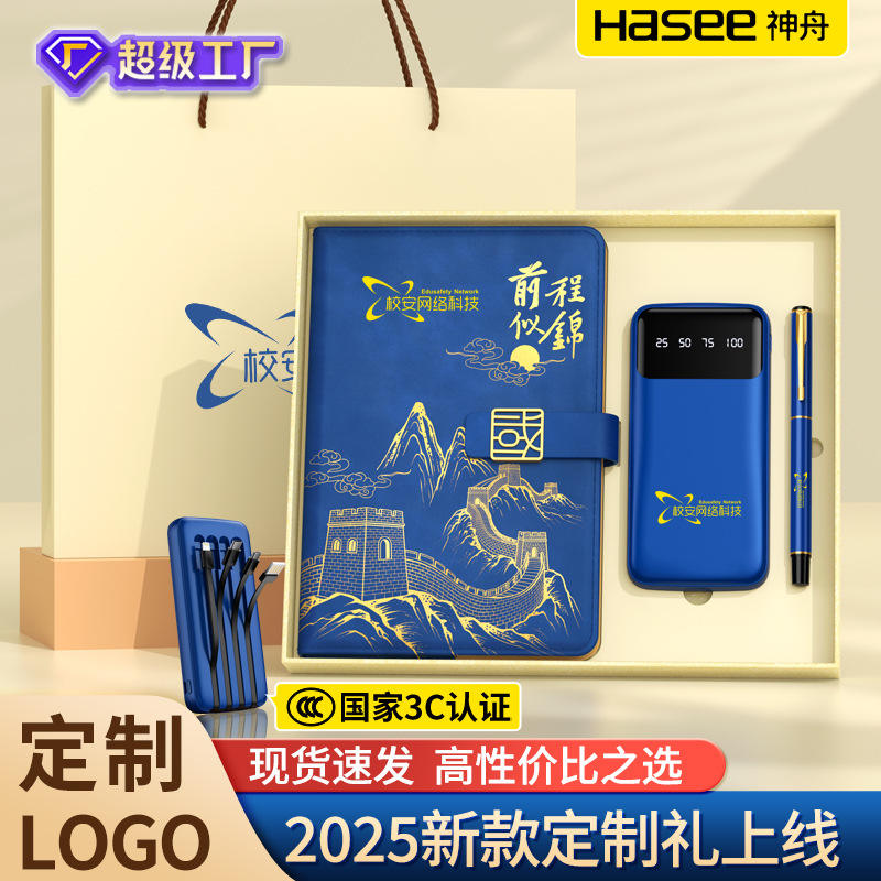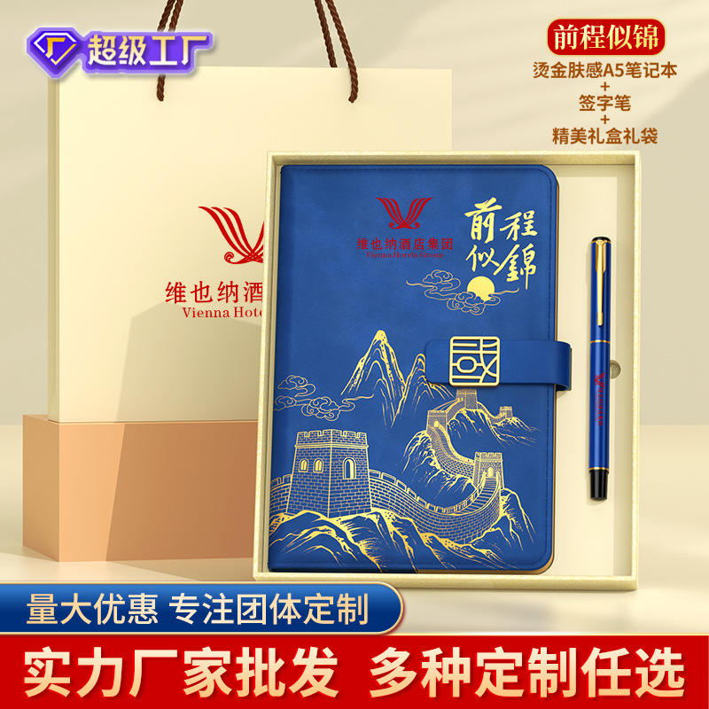 Premium Business Gift Set Notebook Pen Blue Embossed Great Wall Design Personalized Paper for Teachers Students Graduation