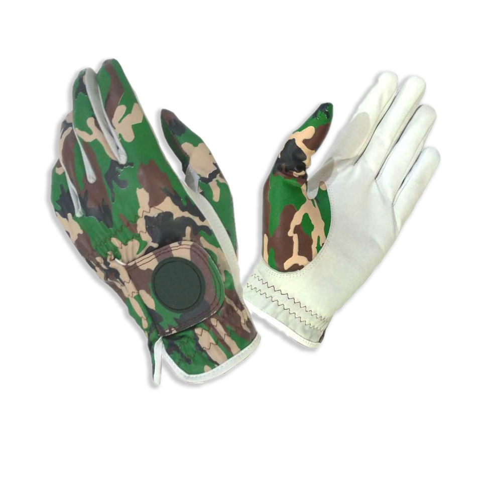 ถุงมือกอล์ฟของผู้ชายหนัง PU แบบพรีเมี่ยมพร้อมลายทหารระบายอากาศได้ปรับแต่งโลโก้ได้อย่างยั่งยืนสำหรับใช้ในกีฬา