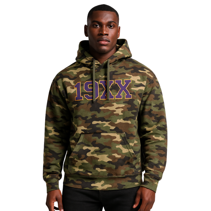 เสื้อมีฮู้ดลายกลายพรางโอเมก้า chenille แบบพรีเมี่ยมเสื้อผ้าคอตตอนผสมเครื่องแต่งกายพี่น้องสไตล์กรีกเสื้อผ้านักศึกษาปี19XX