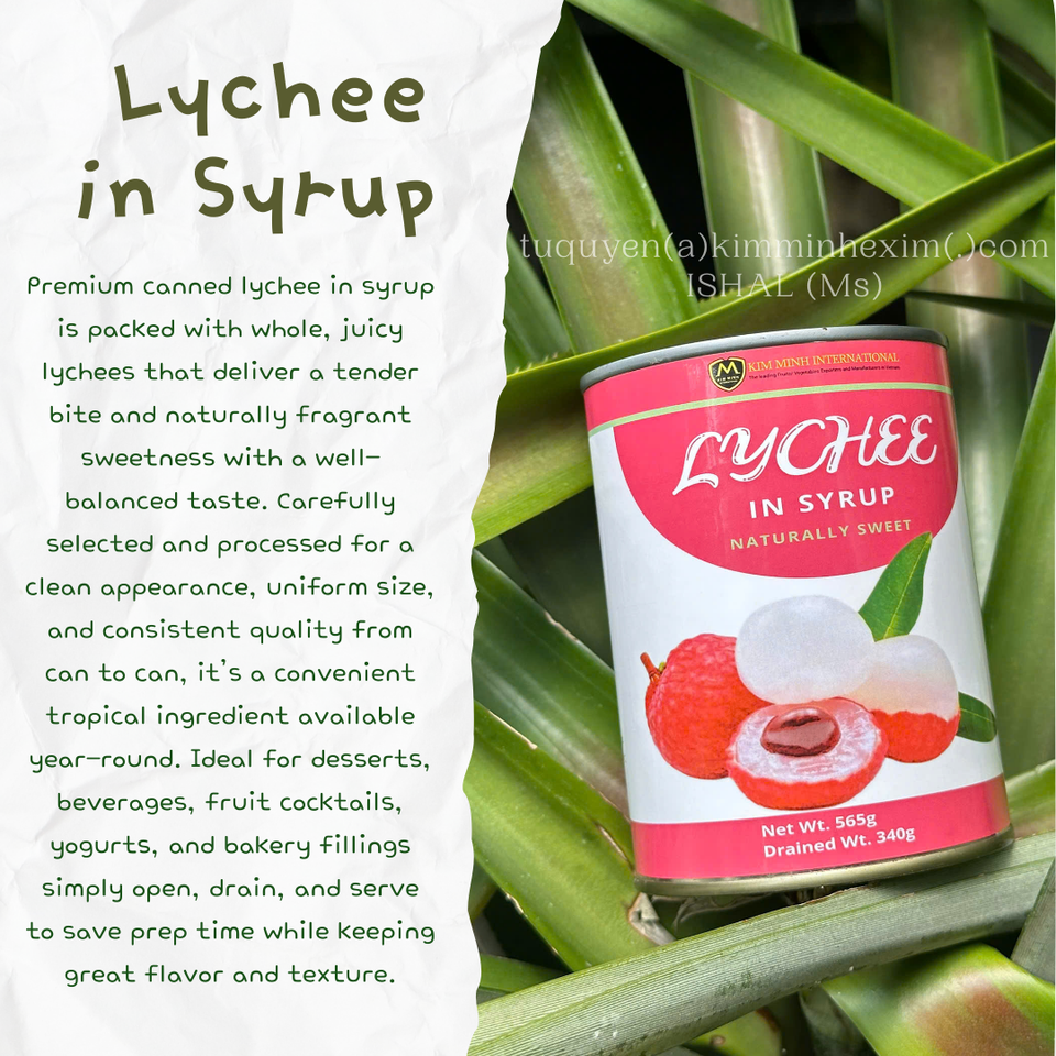 ลิ้นจี่กระป๋องพรีเมียมในน้ำเชื่อมจากเวียดนาม รับผลิตแบบ OEM/ฉลากส่วนตัว